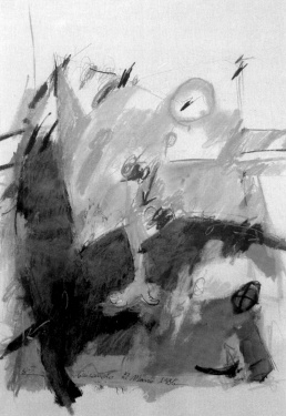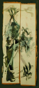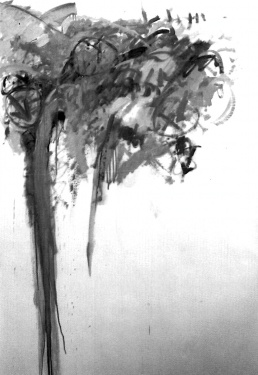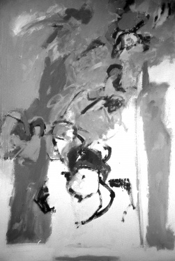 Grafismos gestuales, manchas informales.Escrituras escondidas. Collages y técnicas mixtas. Abundancia de blancos, grises y negros. Soportes verticales sobre papel, cartón y maderas. Composiciones en grandes formatos.