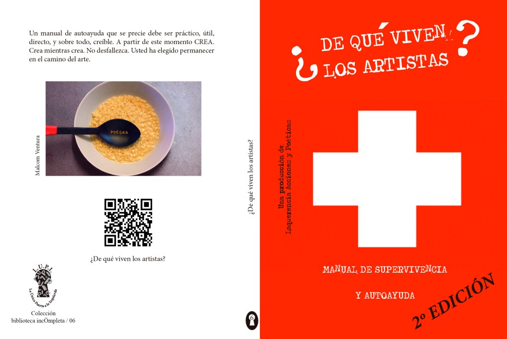 Laquerencia Acciones y Poéticas llevan tiempo poniendo en escena esta pieza multidisciplinar que discurre por los lenguajes del teatro, la poesía y el happening y que hace partícipe y protagonista al público para intentar verter un poco de luz sobre esta incógnita aterradora. ¿De qué viven los artistas? Por ellos hemos reunido los resultados de una investigación que ha durado cuarenta años, ¡SÍ, CUARENTA AÑOS ENCERRADOS EN NUESTRO LABORATORIO, ¡y los hemos apoyado con las observaciones derivadas de un trabajo de campo desarrollado en diferentes ciudades españolas y latinoamericanas y en el que se recogen las opiniones fidedignas, sinceras y contundentes de los asistentes al experimento escénico, que han tenido a bien enriquecer y ayudar a conformar este Manual de Supervivencia!