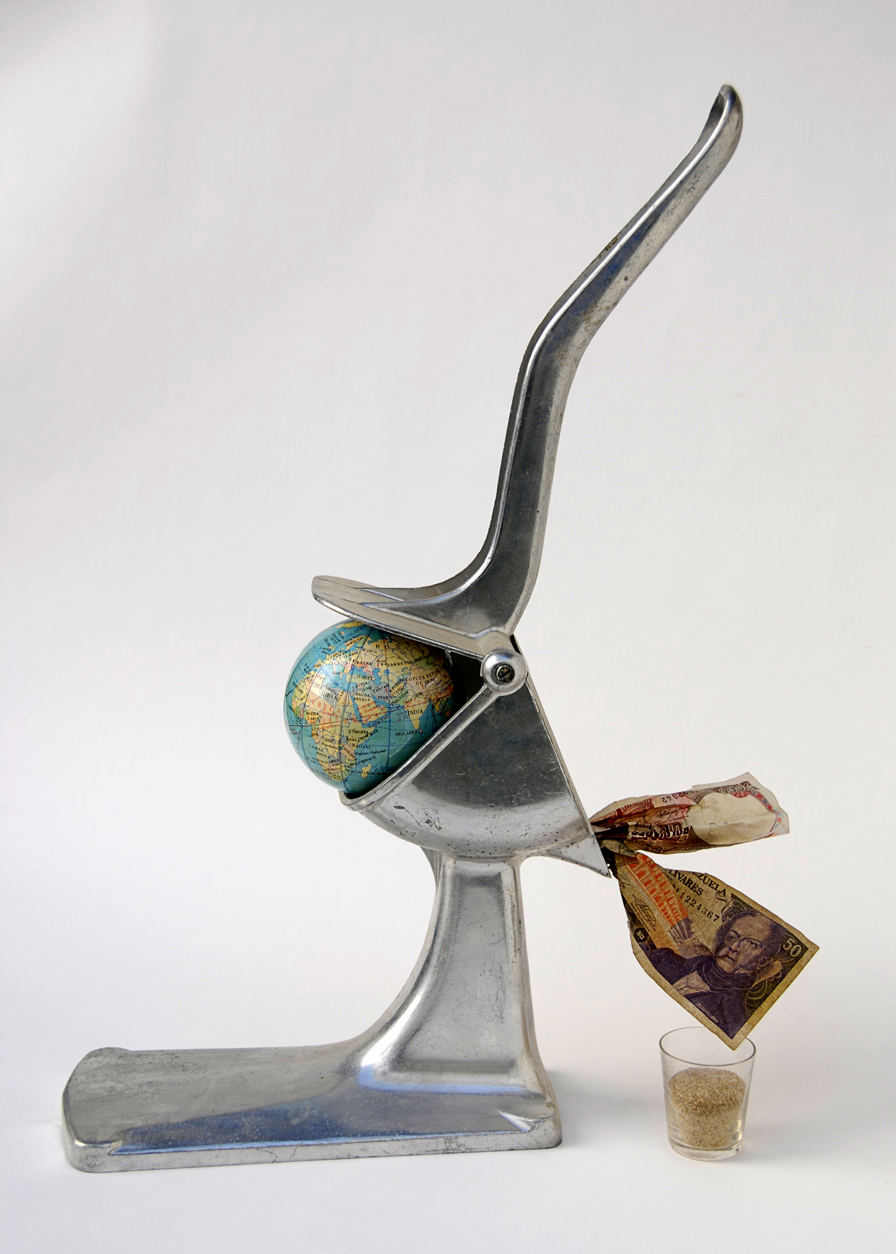 Transitar por un sendero de recuerdos no es, a veces, tarea baladí. Si además el recorrido ha sido largo, de más de dos décadas, y cargado de vivencias, de olores y de gestos, el transitante ha de andar con cien ojos para no sucumbir en la avalancha que se le viene a uno encima a la hora de mirar hacia atrás. No queda otro remedio pues que hilar fino, descabezar sin piedad lo innecesario, seleccionar y escoger de nuevo para quedarte con lo esencial del trayecto. Así se plantea la exposición Javier Seco en el espacio de la Galería Arrabal y Cía. Como una caminata por su estancia en la ciudad de Granada jalonada de objetos encontrados, pinturas, esculturas o instalaciones que propician un paseo en conversación con los recuerdos escogidos por el autor. Las piezas, muchas de ellas inéditas, te hablan de su propia historia, de sus orígenes o usos ancestrales y al tiempo de la nueva lectura que te proporcionan después de haber sido intervenidas. Así los objetos usuales, humildes, cotidianos en una época, cobran otra vida y comienzan a tejer nuevos argumentos. Las obras claman por la consciencia, por el despertar, por los problemas medioambientales, la polaridad social, las desigualdades de género y el aislamiento progresivo del humano. Susurran, hasta convertirse en grito, evidenciando los problemas acuciantes de nuestra sociedad y nuestro planeta para, según palabras del autor “. Unirse a todas las voces que ya resuenan imparables para conformar un gran clamor”. Durante las cuatro semanas que dura la exposición discurrirán por la galería diferentes artistas nacionales que con inmensa generosidad y desinteresadamente, aportarán su buen hacer para intervenir, conectándose con el espíritu de las obras expuestas, con propuestas exclusivas para la ocasión. Tendremos música en directo, performances, poesía, presentaciones de libros, instalaciones sonoras, proyecciones audiovisuales, danza contemporánea, acciones de guerrilla…para aunar energías y diversificar visiones en búsqueda de una obra de Arte Total. Seco no te deja indiferente. Deja prendidos en tu cabeza y en tu corazón anzuelos de memoria que permanecen anclados tras abandonar la exposición. La aparente facilidad con la que resuelve alguna de sus creaciones producen en el espectador una sensación ambivalente de poderlas ubicar en su propio universo y, a la vez, que se escapen de él. Los títulos de las obras acotan también el abanico de posibilidades de interpretación y son fundamentales en esta muestra. Malcom Ventura Marzo 2022